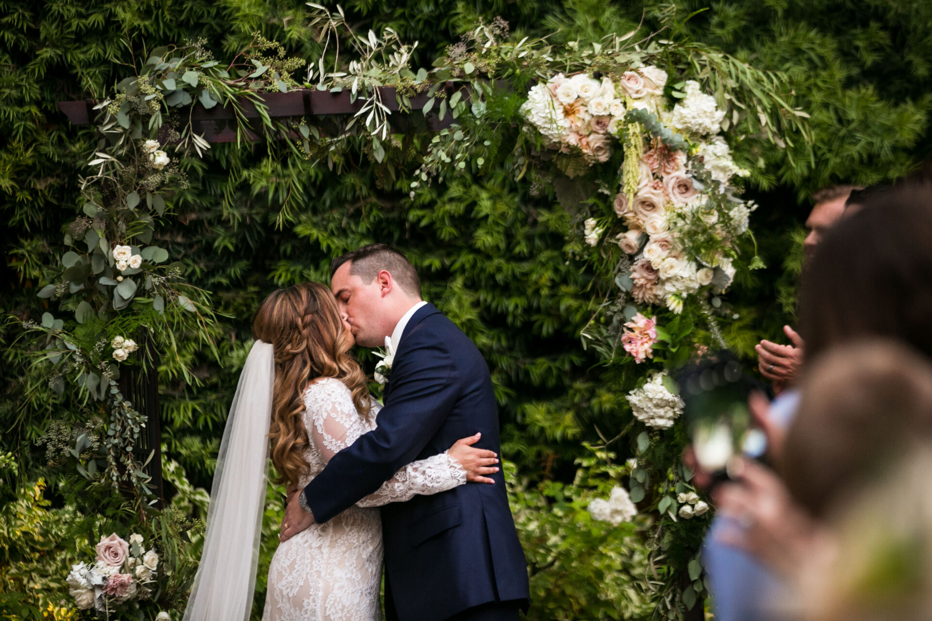 Officiant move: Please ask the officiant to step to the side before your kiss or have the maid of honor be in charge to remind them of this. It’s always a nicer image if no one is standing directly behind you during the kiss.