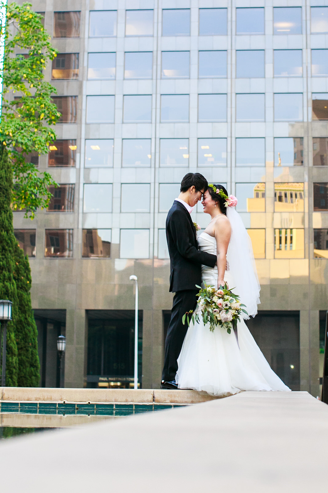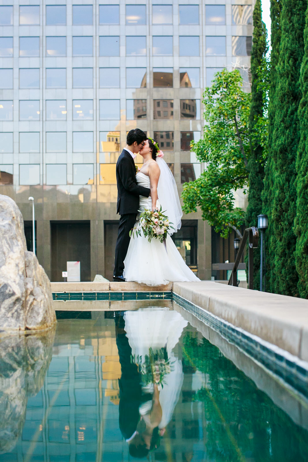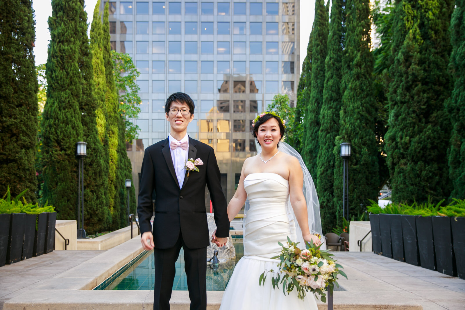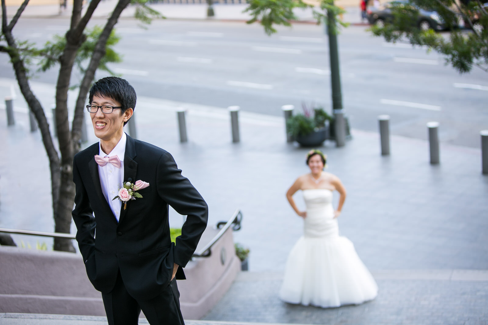 Set in the heart of Downtown LA, all the planning for Kailen & Jinoh’s wedding had fallen into place. The Millennial Biltmore was the perfect place for the two get ready, with the Cafe Pinot ceremony just a short walk away from the hotel. But before heading to the ceremony, we stopped at a large staircase across the street from the restaurant for a much anticipated First Look. After seeing each other for the first time, we whisked the bridal party back across the street where family & friend’s waited anxiously for the couple’s arrival. As the sun set and reception lights illuminated, the night was filled with an epic grand entrance, choreographed dancing, tearful speeches, and a an awesome sparkler exit. Congrats to Jinoh & Kailen!