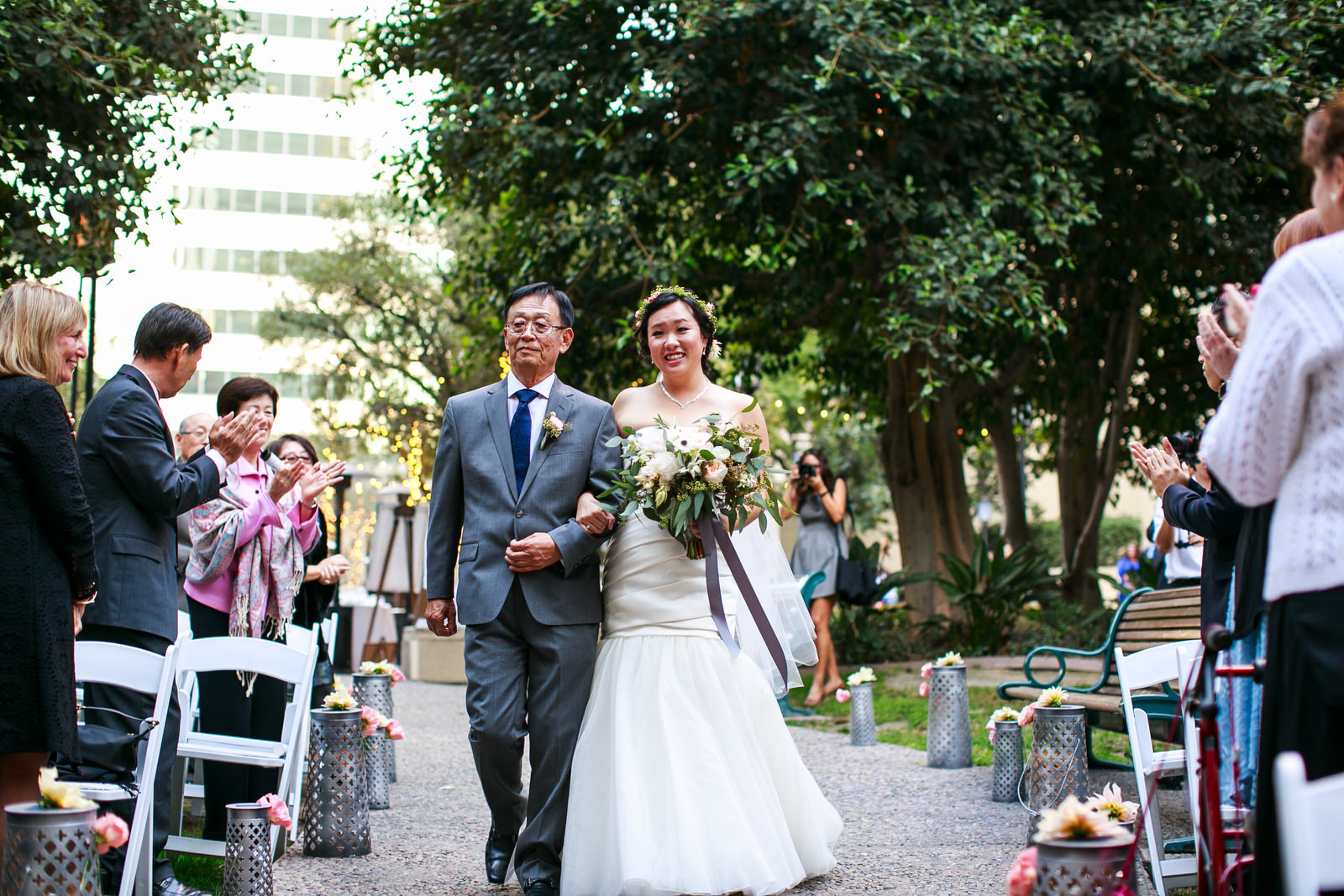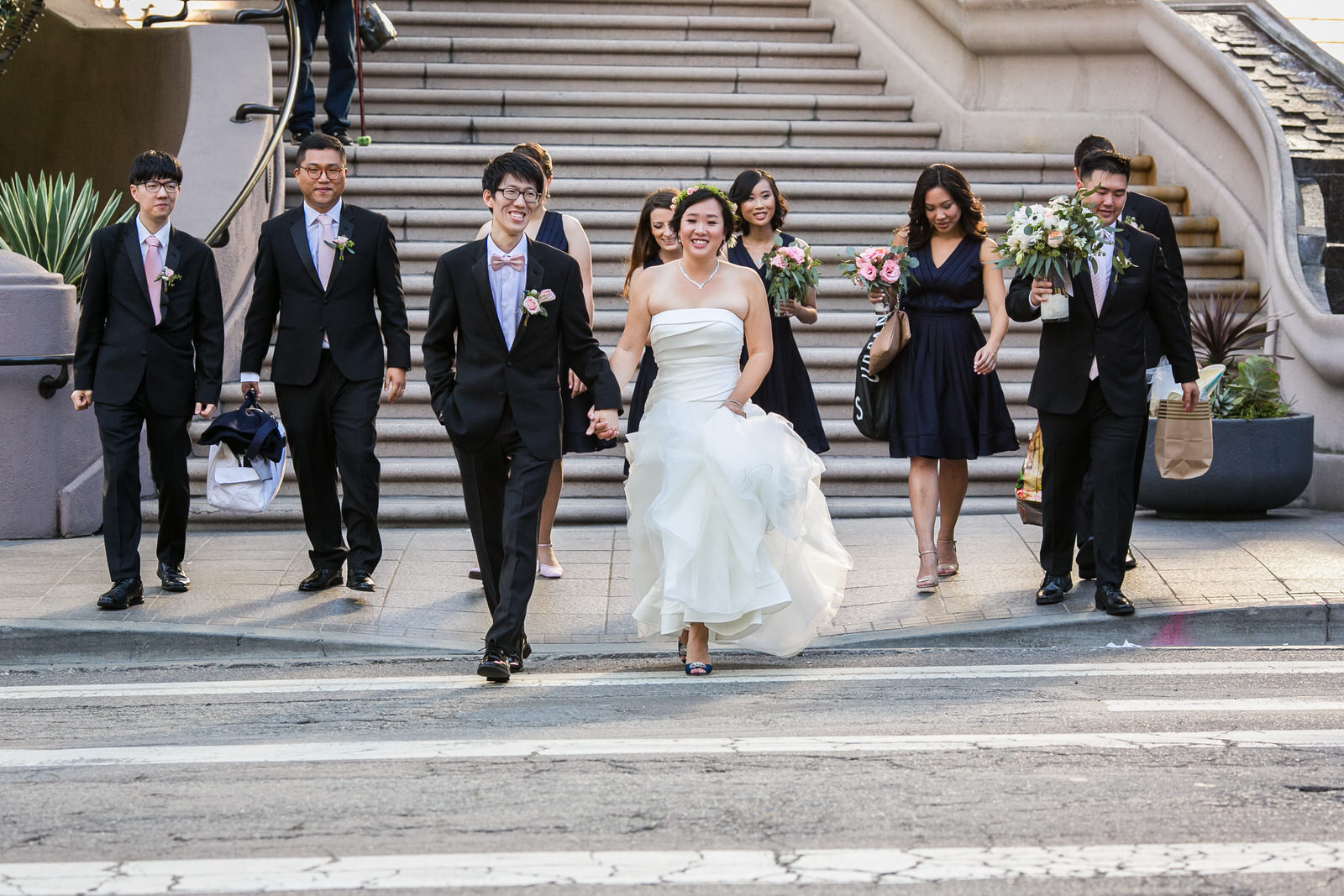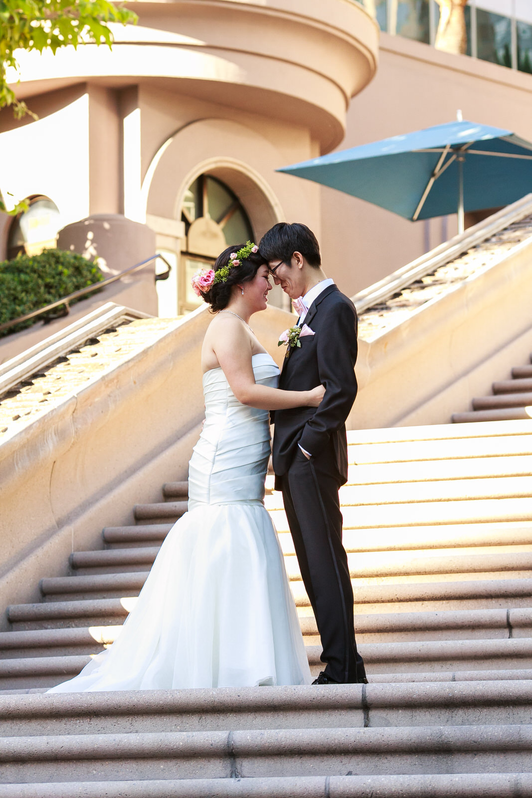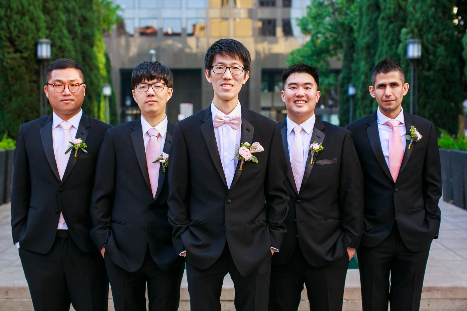 Set in the heart of Downtown LA, all the planning for Kailen & Jinoh’s wedding had fallen into place. The Millennial Biltmore was the perfect place for the two get ready, with the Cafe Pinot ceremony just a short walk away from the hotel. But before heading to the ceremony, we stopped at a large staircase across the street from the restaurant for a much anticipated First Look. After seeing each other for the first time, we whisked the bridal party back across the street where family & friend’s waited anxiously for the couple’s arrival. As the sun set and reception lights illuminated, the night was filled with an epic grand entrance, choreographed dancing, tearful speeches, and a an awesome sparkler exit. Congrats to Jinoh & Kailen!